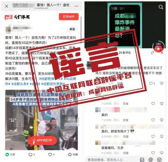 辟谣:成都警方查处2名涉“成都4S店燃爆事件”造谣者
